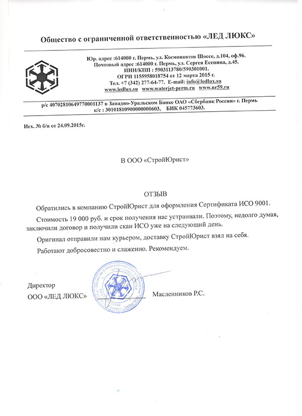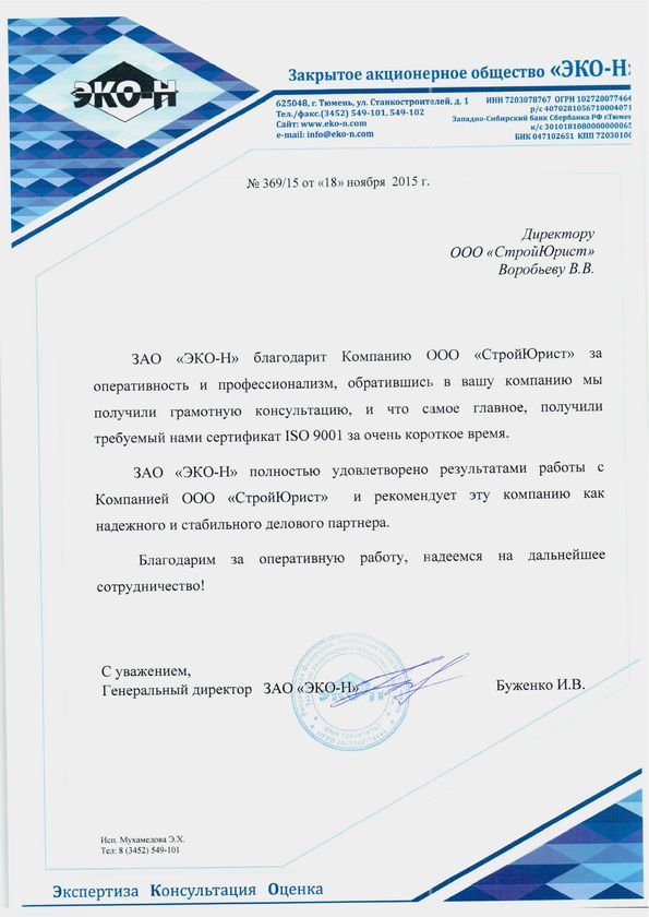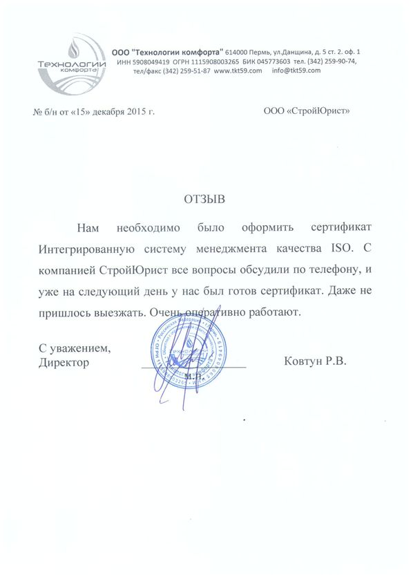 Отзывы клиентов "СтройЮрист" по ISO в Тамбове