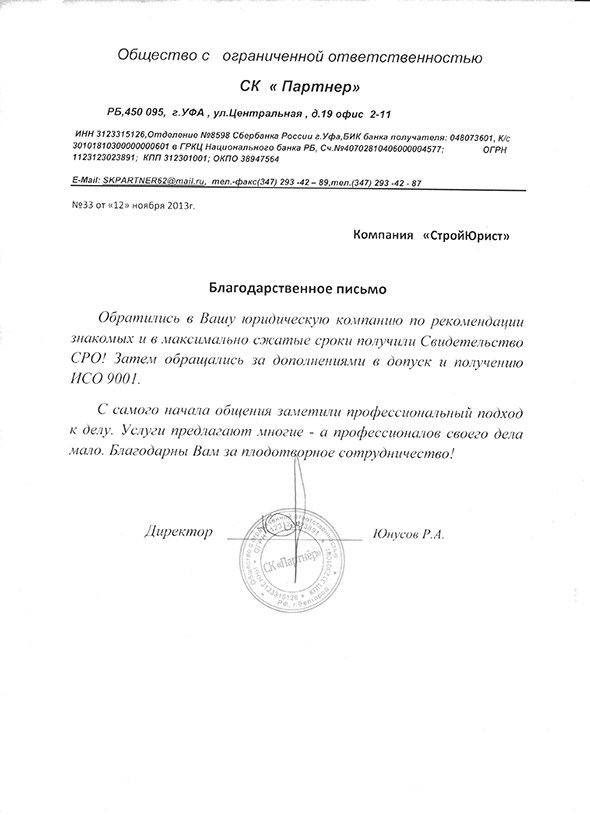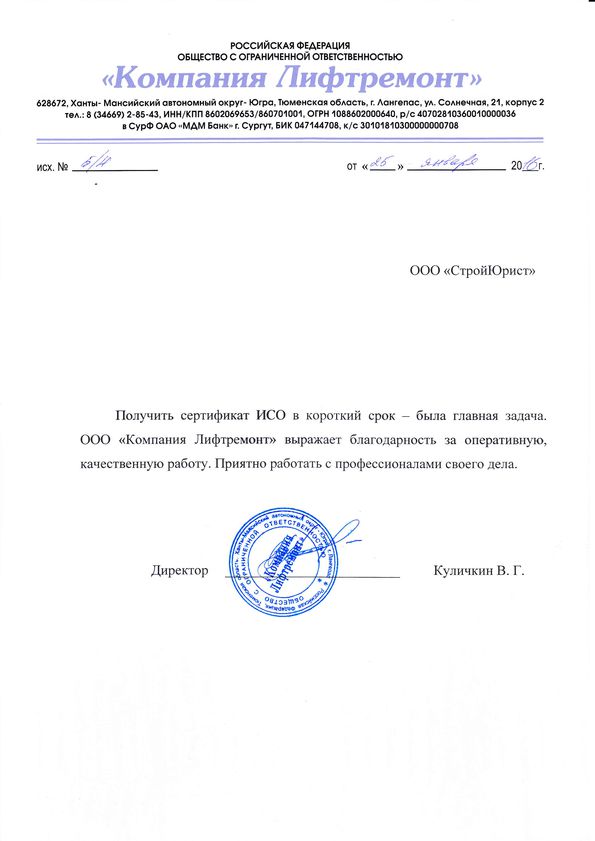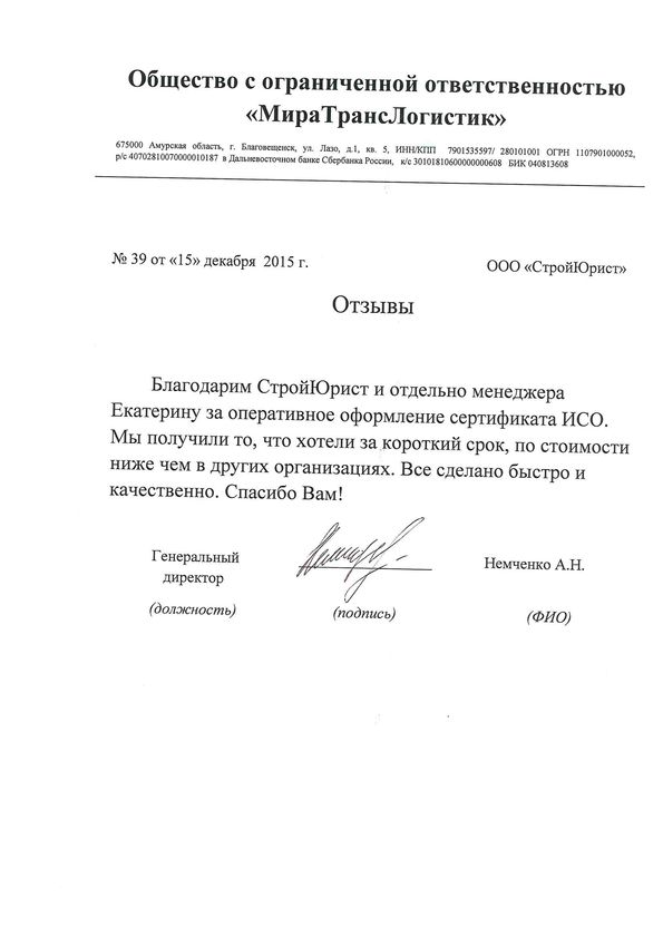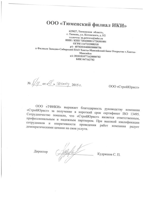 Отзывы клиентов "СтройЮрист" по ISO в Тамбове