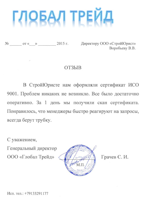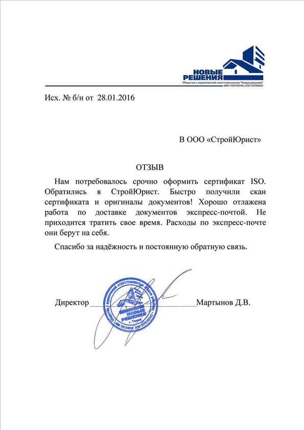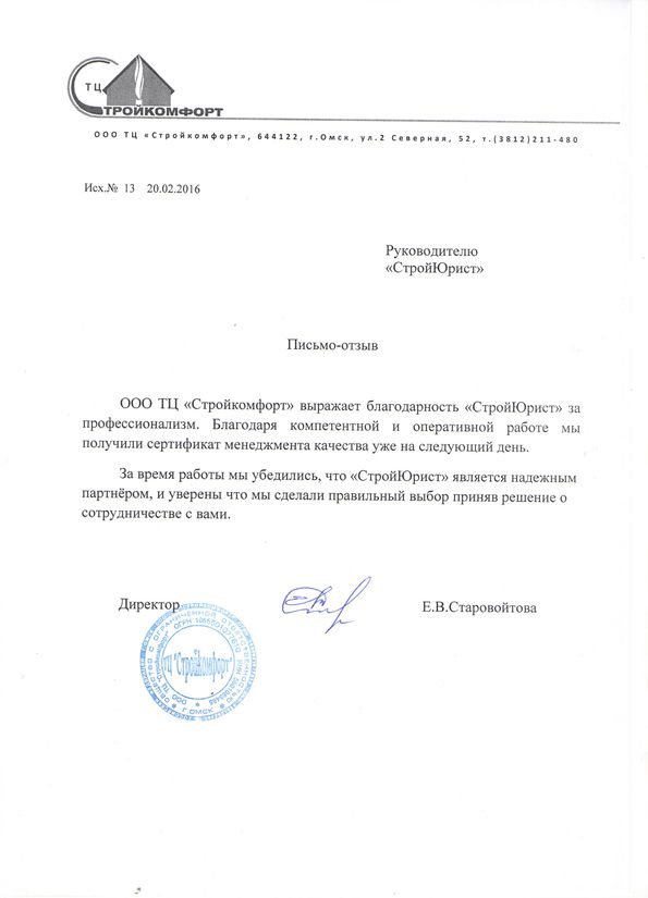 Отзывы клиентов "СтройЮрист" по ISO в Тамбове