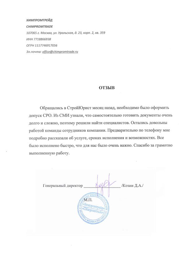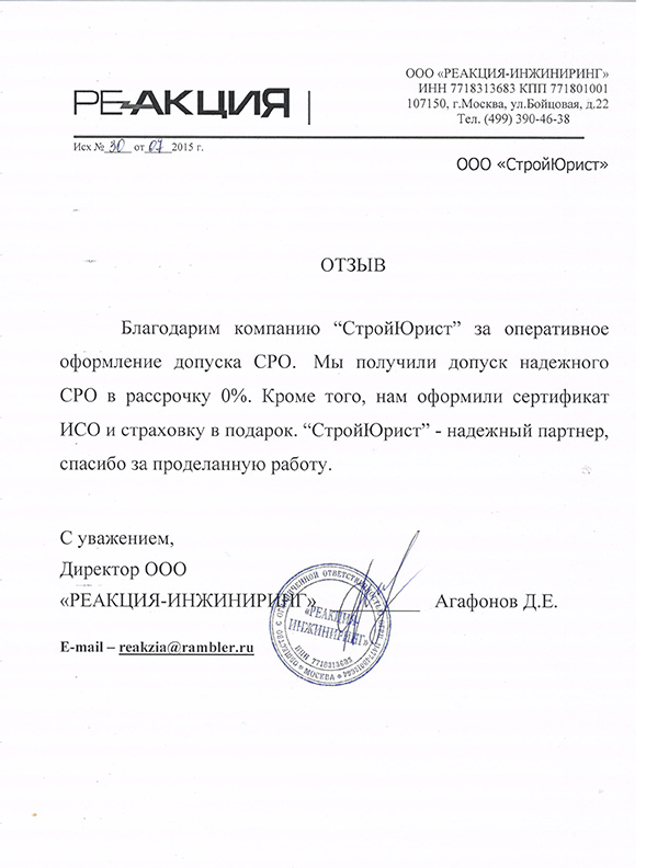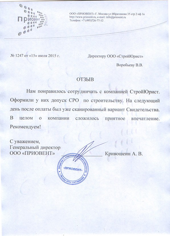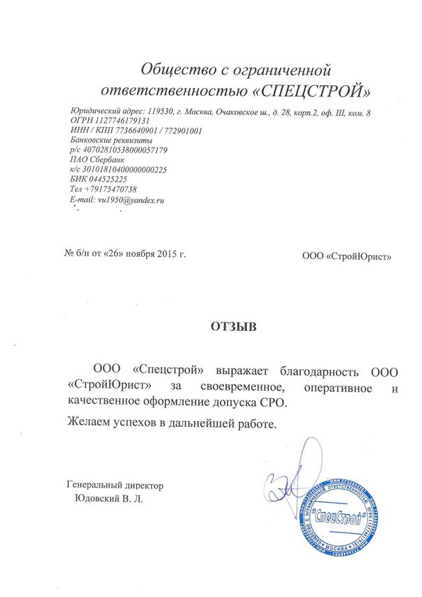 Отзывы клиентов "СтройЮрист" по вступлению в СРО в Тамбове