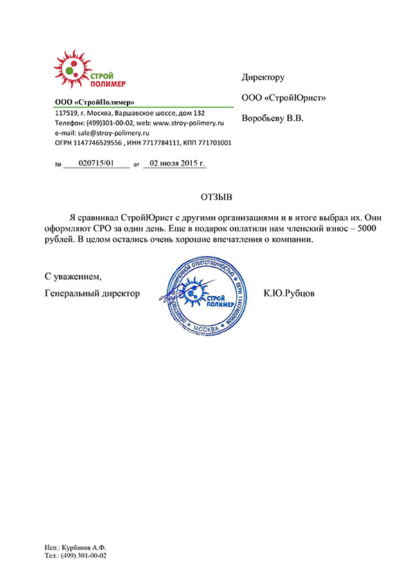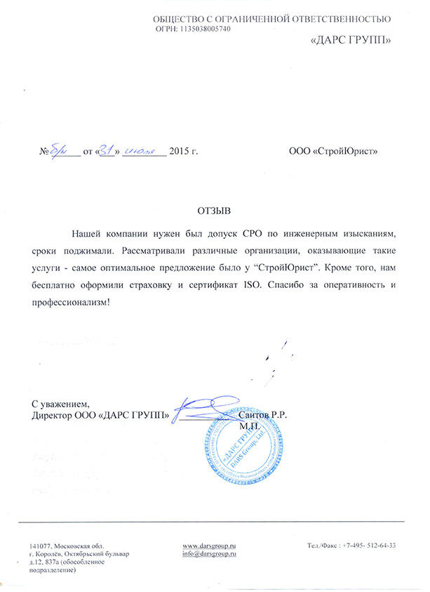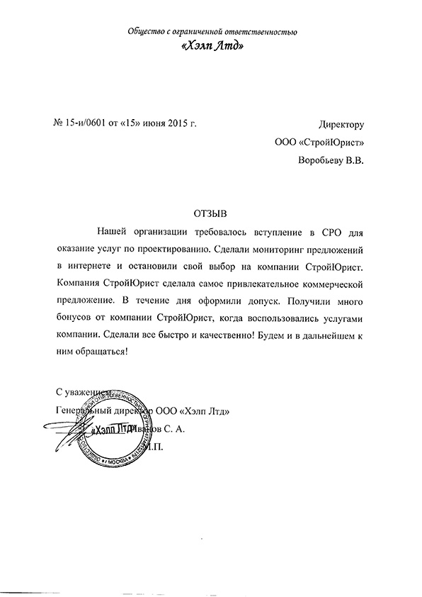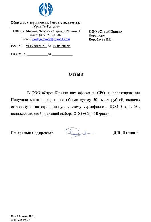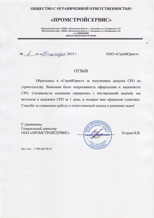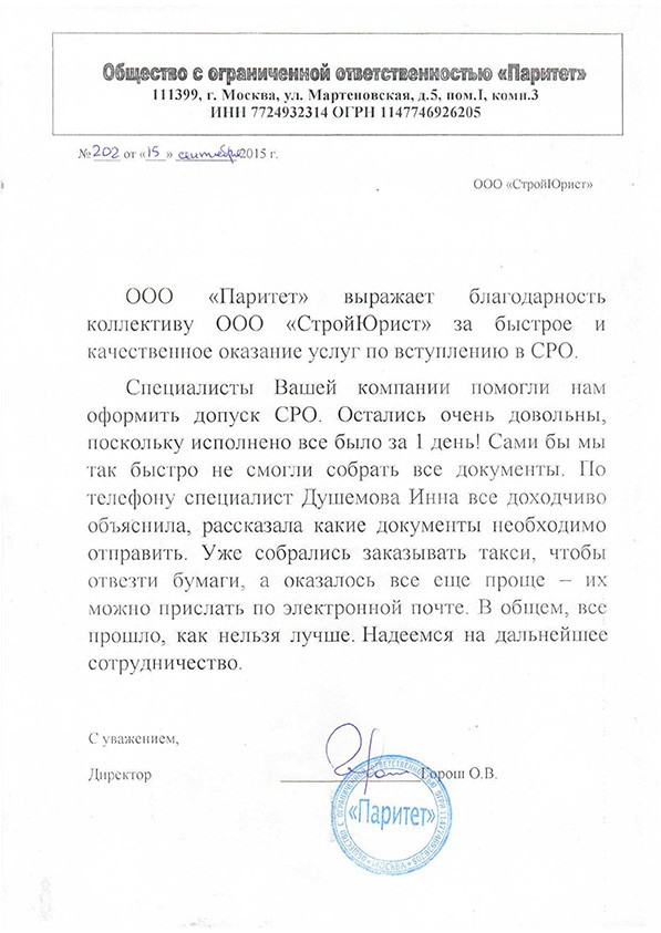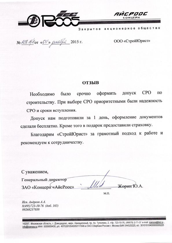 Отзывы клиентов "СтройЮрист" по вступлению в СРО в Тамбове