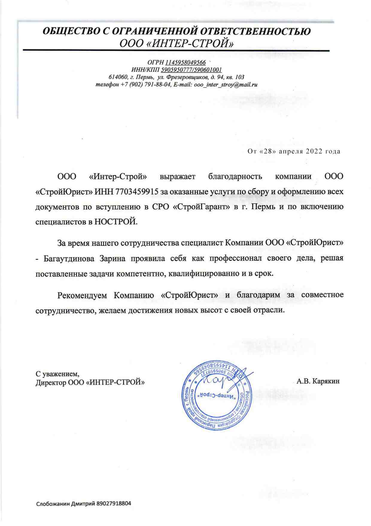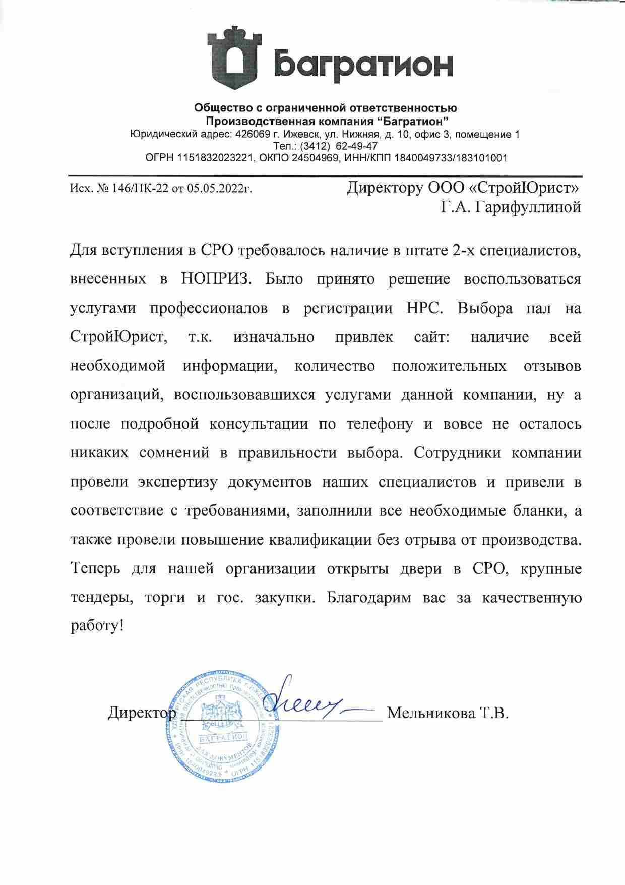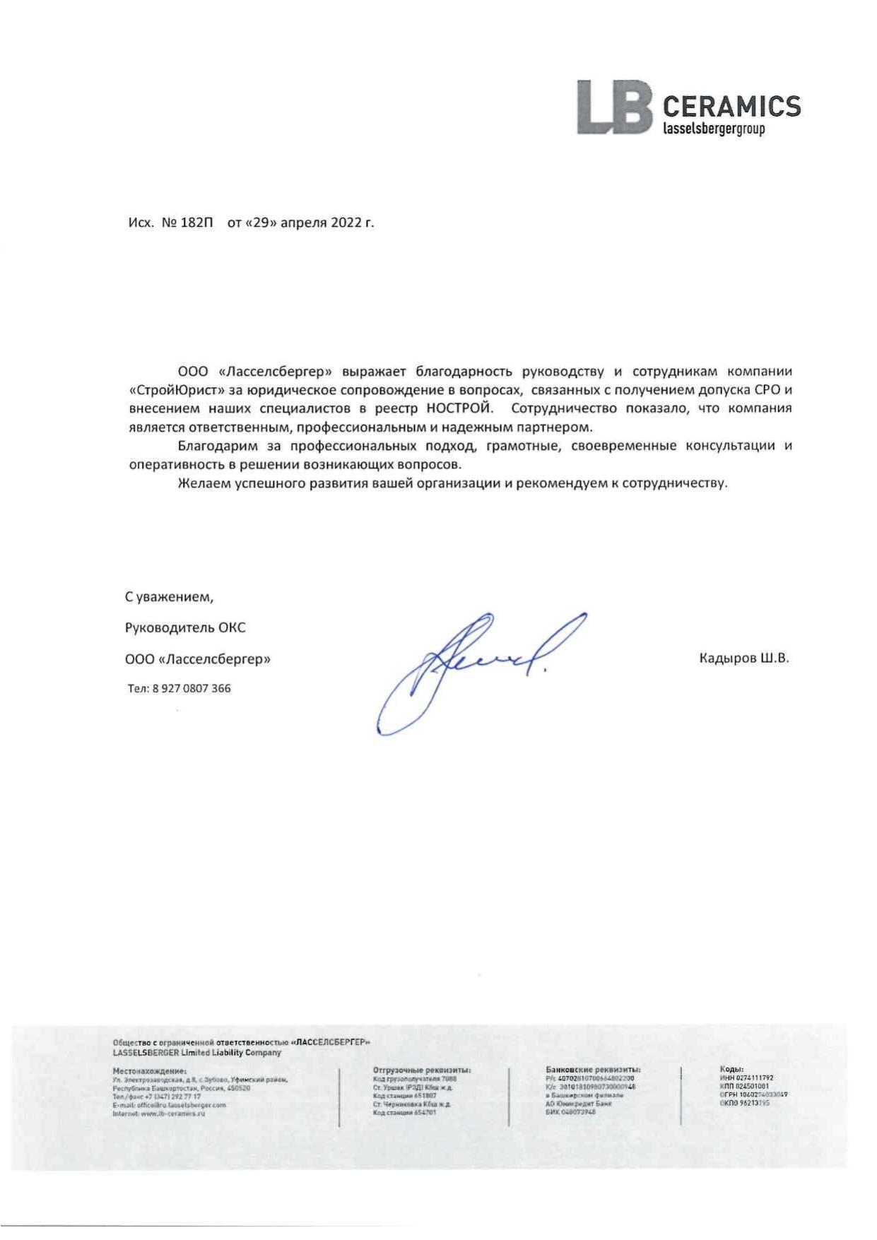 Отзывы клиентов "СтройЮрист" по вступлению в СРО в Тамбове