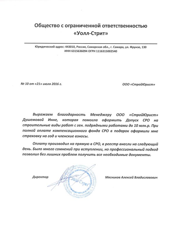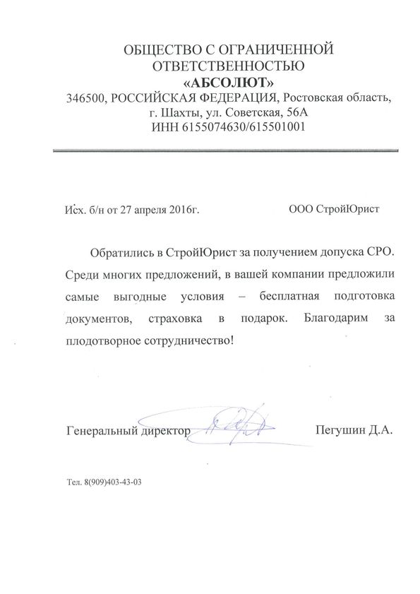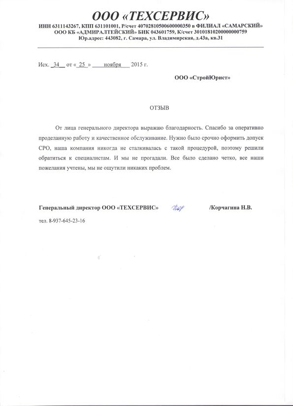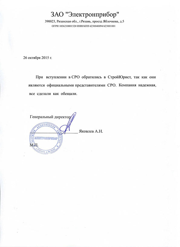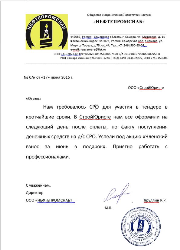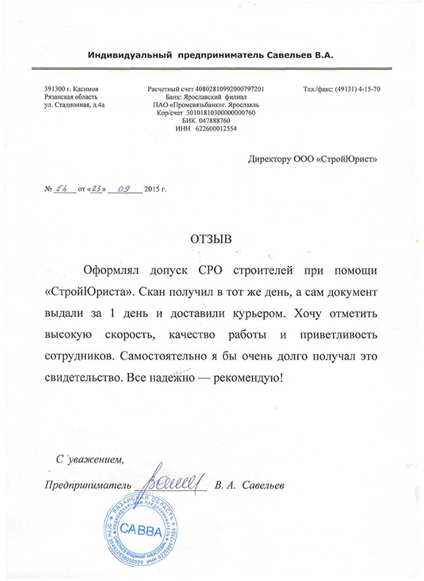 Отзывы клиентов "СтройЮрист" по вступлению в СРО в Тамбове
