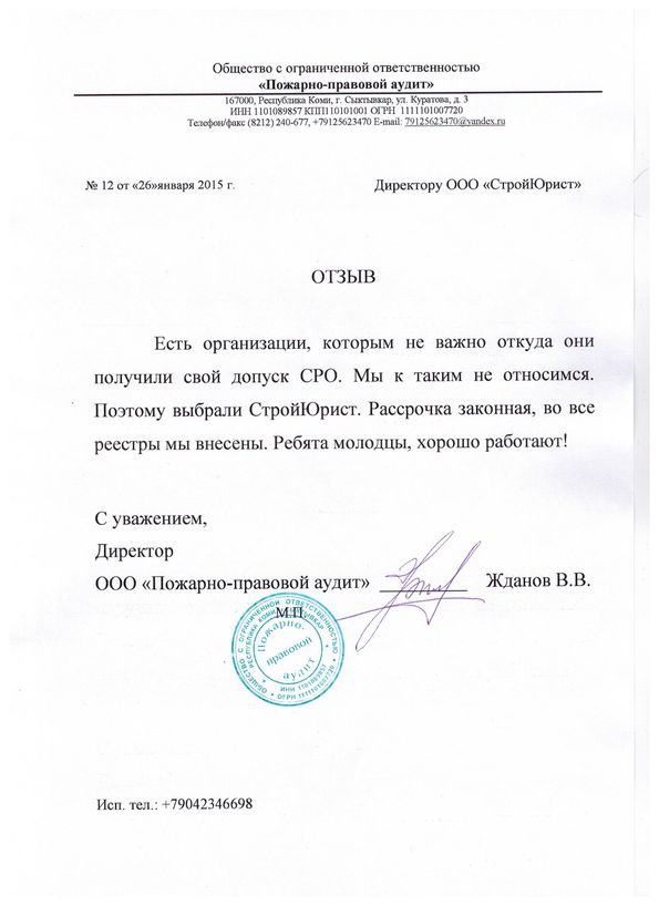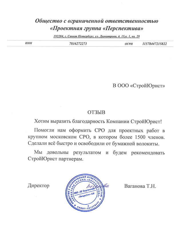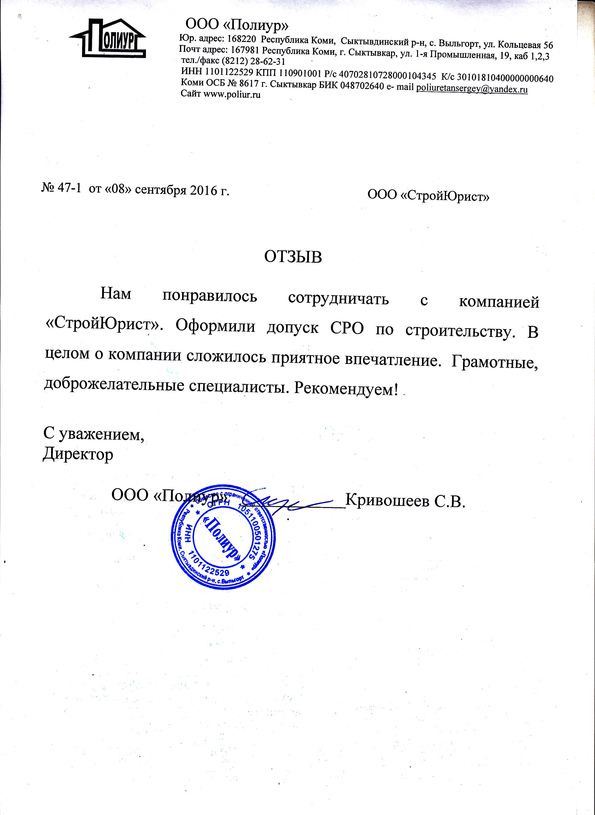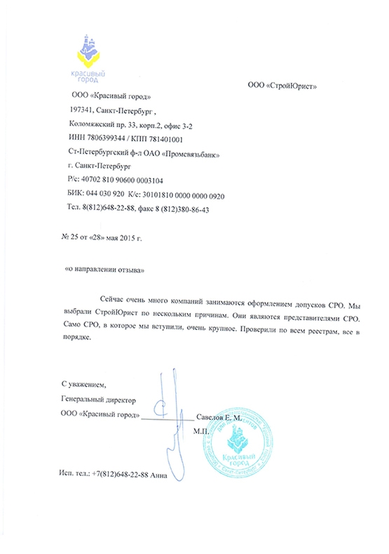 Отзывы клиентов "СтройЮрист" по вступлению в СРО в Тамбове