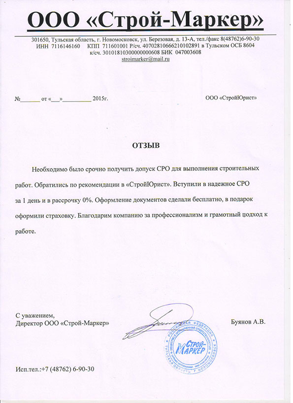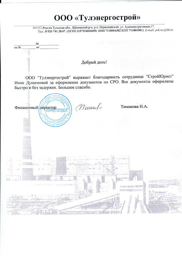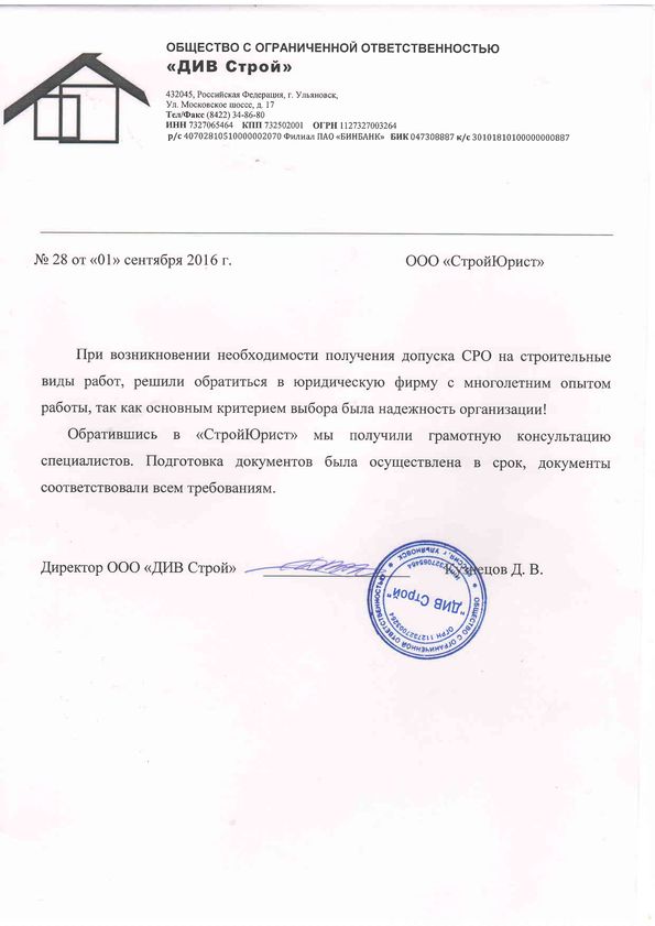 Отзывы клиентов "СтройЮрист" по вступлению в СРО в Тамбове