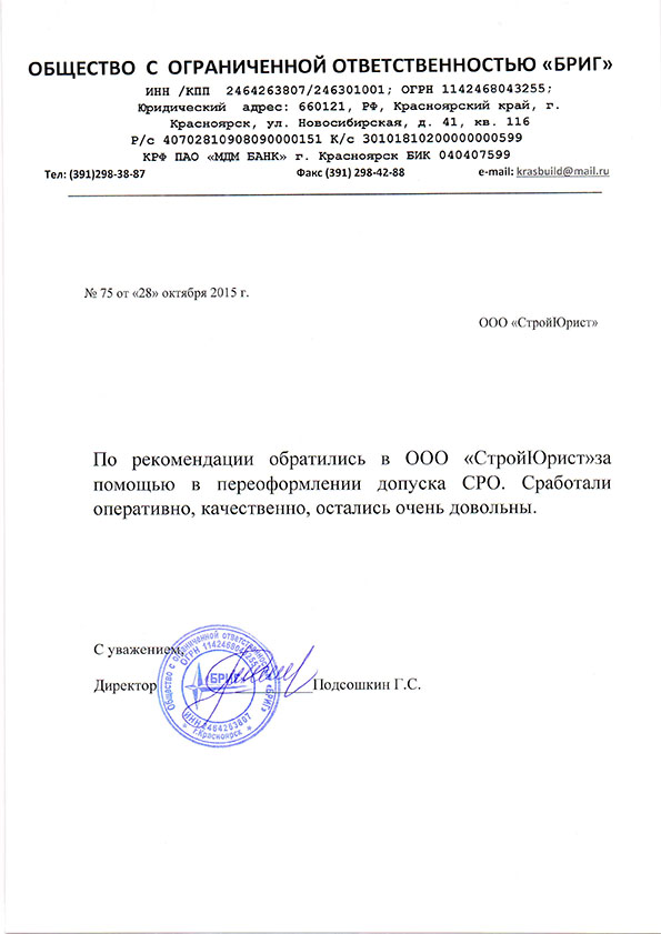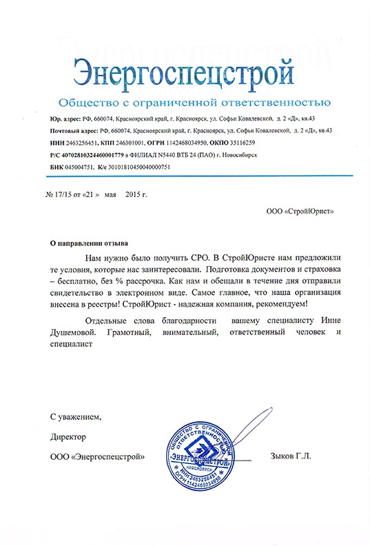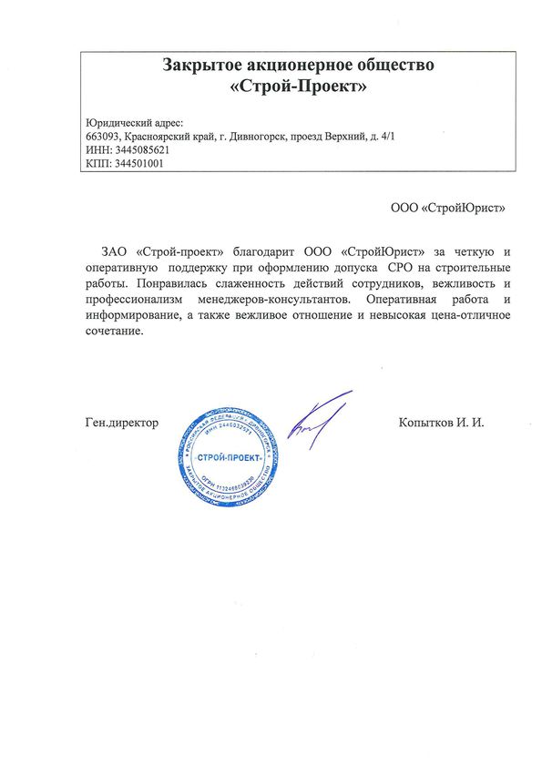 Отзывы клиентов "СтройЮрист" по вступлению в СРО в Тамбове