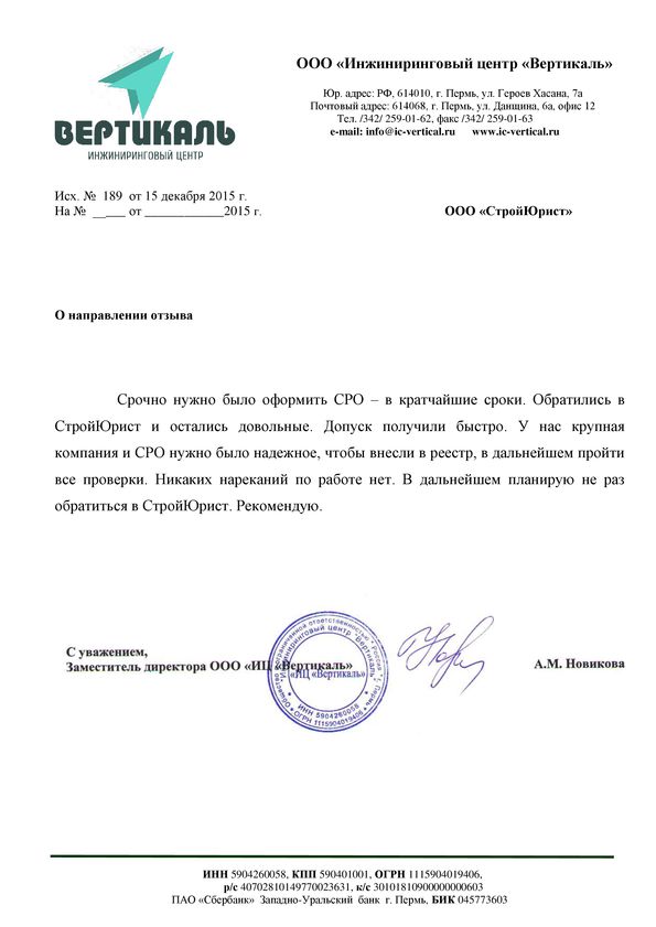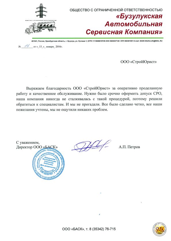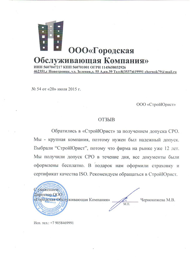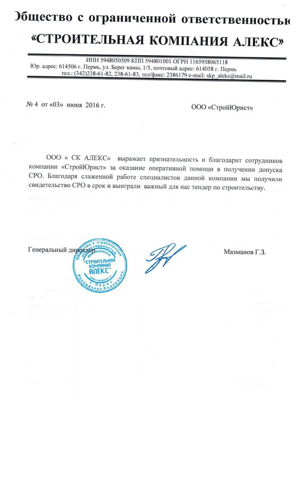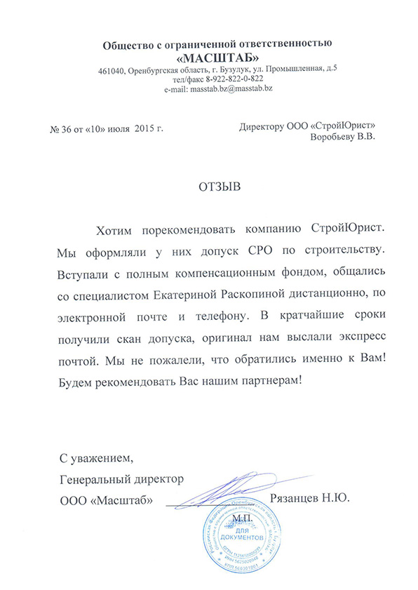 Отзывы клиентов "СтройЮрист" по вступлению в СРО в Тамбове
