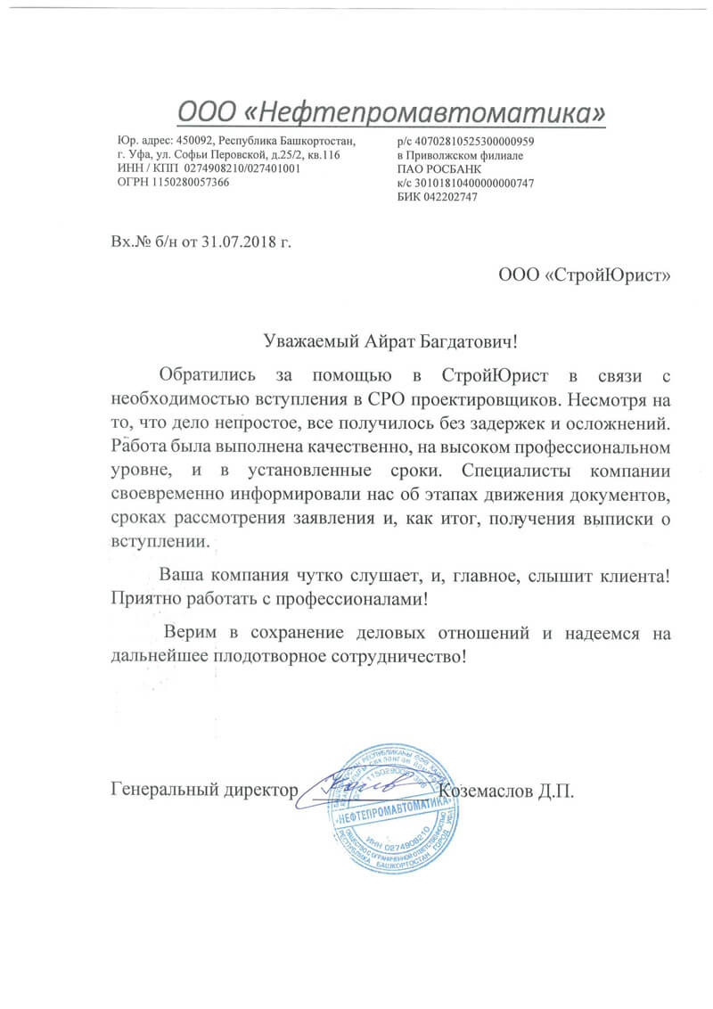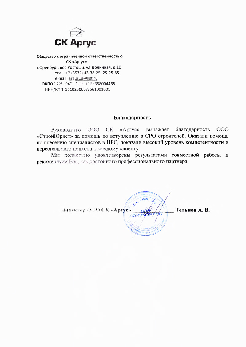 Отзывы клиентов "СтройЮрист" по вступлению в СРО в Тамбове