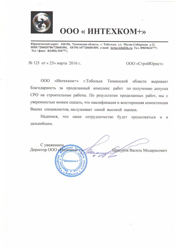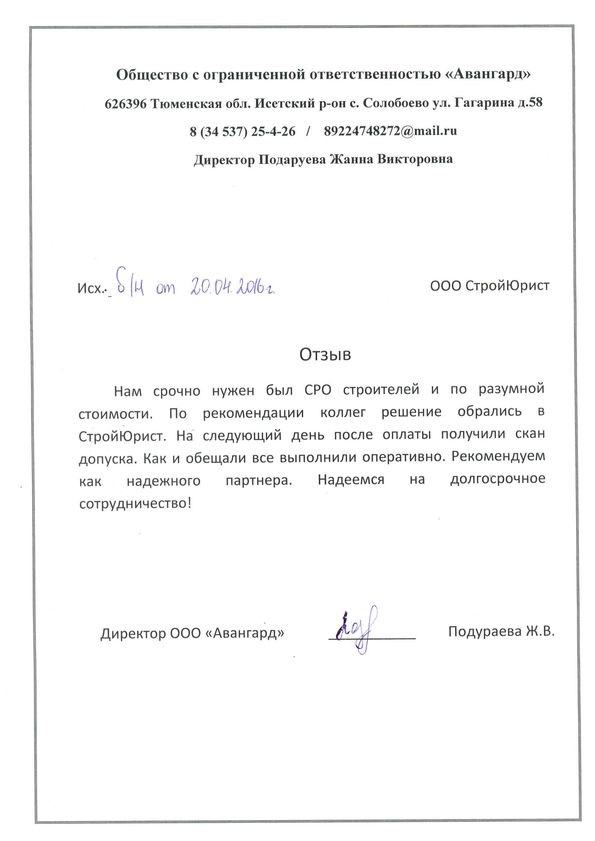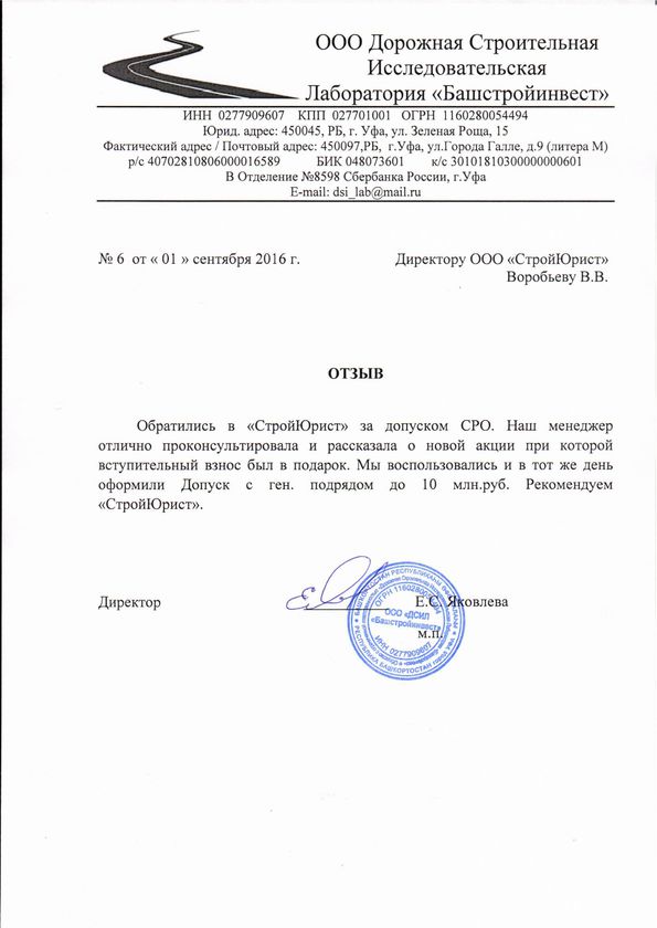 Отзывы клиентов "СтройЮрист" по вступлению в СРО в Тамбове