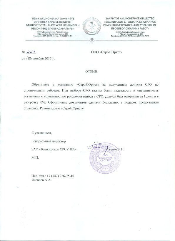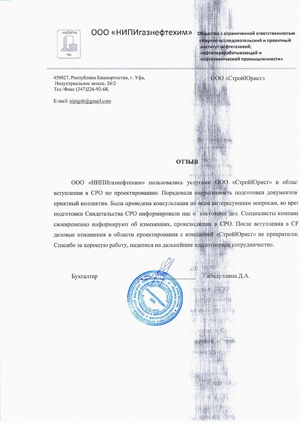 Отзывы клиентов "СтройЮрист" по вступлению в СРО в Тамбове