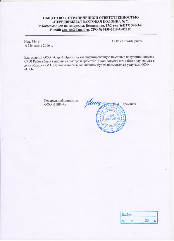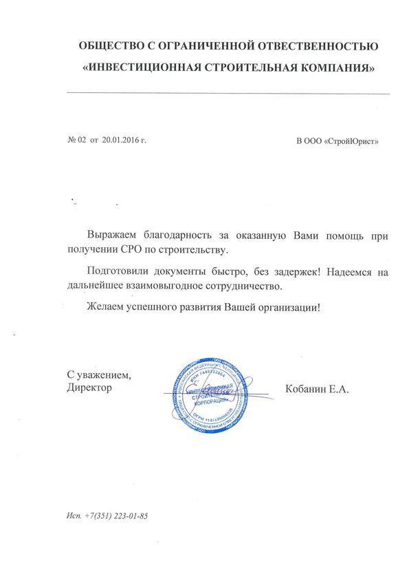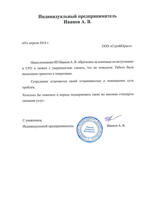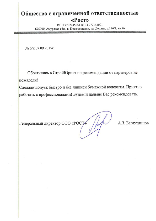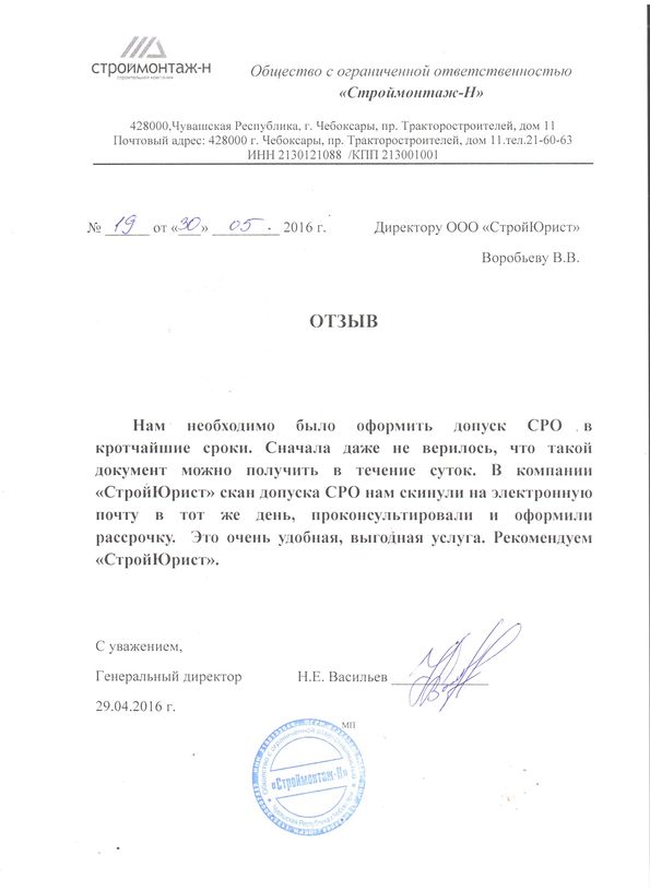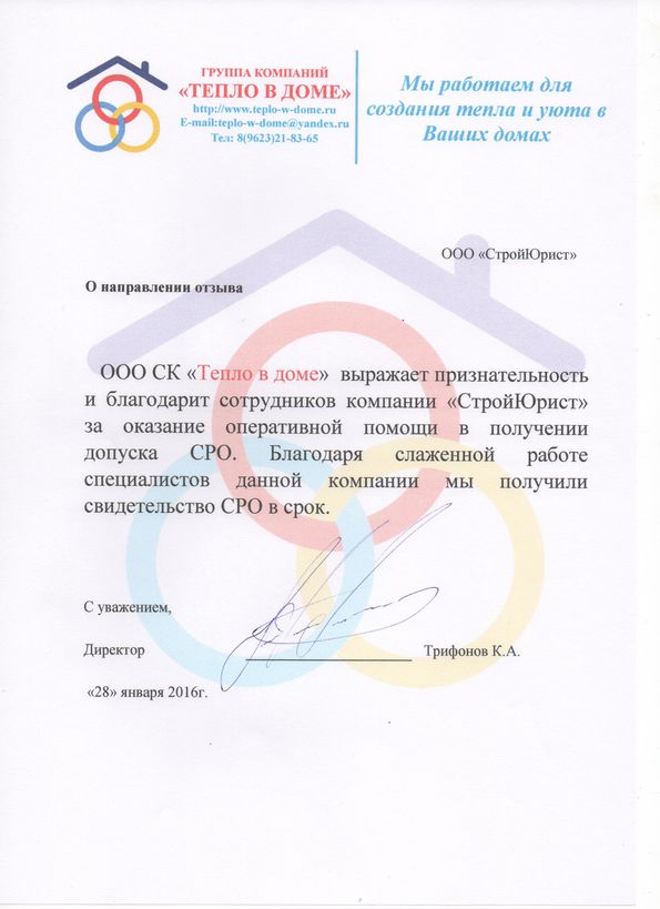 Отзывы клиентов "СтройЮрист" по вступлению в СРО в Тамбове