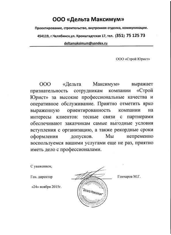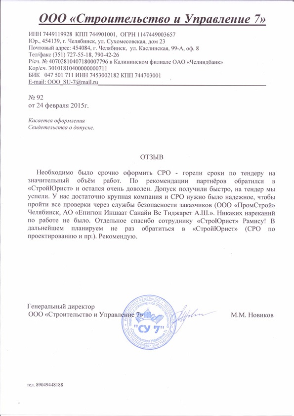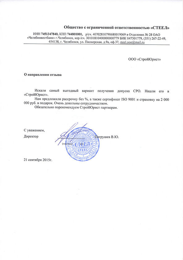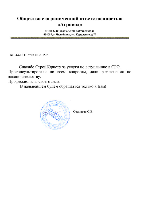 Отзывы клиентов "СтройЮрист" по вступлению в СРО в Тамбове